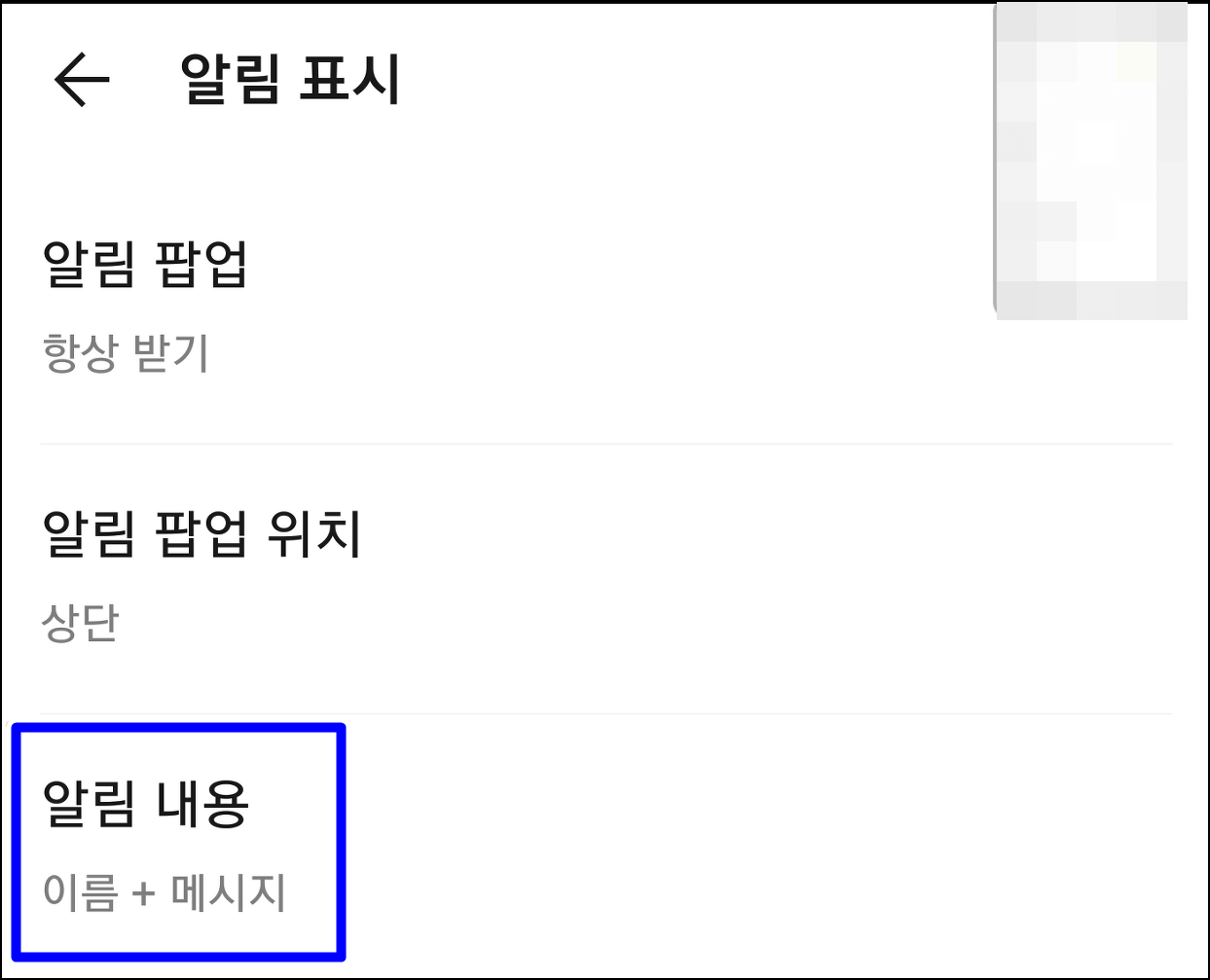 알림 내용을 선택하시고