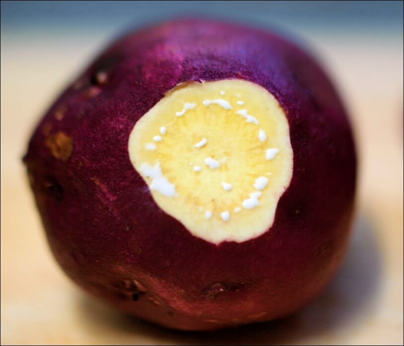 건강한 고구마를 고르는 방법 중에 하나가 바로 고구마 끝을 잘라 보는 것인데요.. 고구마 끝을 자르게 되면 잘려나간 부위를 보호하려고 얄라핀이라는 코팅제 역할을 하는 성분을 분비합니다. 이 성분은 우리 몸에서 변비를 없애주는 좋은 성분인데요... 고구마 끝을 잘랐을 때 하얀색 얄라핀이 묻어 나온다면 신선하고 건강한 고구마라는 표시입니다.