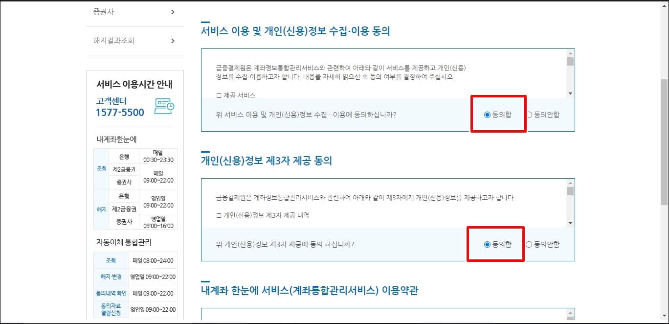 서비스 이용 및 개인 정보수집, 개인 정보 제삼자 제공 동의, 이용약관에 모두 동의로 체크합니다.