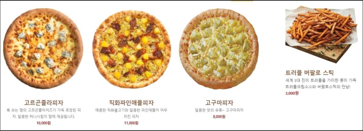 피자스쿨 홈페이지에는 보시는 바와 같이 피자의 이미지와 가격 그리고 설명이 자세히 잘 나와있습니다. 보기만 해도 먹고 싶어 미치겠는데요...🤤🤤🤤🤤 그럼 시작해보도록 하겠습니다.