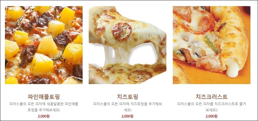 1. 피자스쿨 종류 및 가격