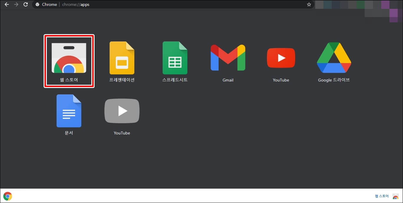 좌측 첫 번째에 웹 스토어를 클릭합니다.