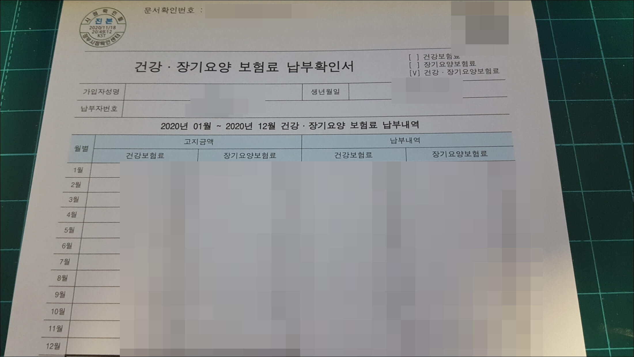 4. 직장 가입자의 피부양자로 속해 있는 경우에는 건강 보험 납부대상이 아니기 때문에 납부확인서 발급이 불가합니다.