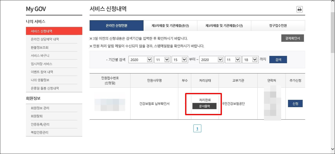 온라인 민원신청이 빠르게 처리됐습니다. 문서 출력을 클릭해서 프린터기로 출력해보도록 하겠습니다.