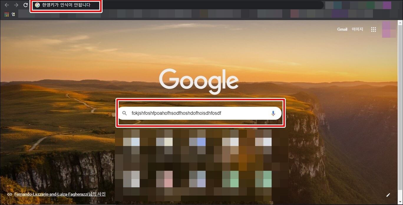 우선 간단하게 할 수 있는 방법부터 하나씩 해보고 안되면 몇 가지 설정을 통해서 한영키를 고쳐보도록 하겠습니다. 검색 엔진을 열었을 때 한영키가 말을 듣지 않는다면 아래와 같이 인터넷 주소창에 한영키를 누르면서 바꿔보시면 됩니다. 의외로 이 방법으로 해결되는 경우가 꽤 있습니다.