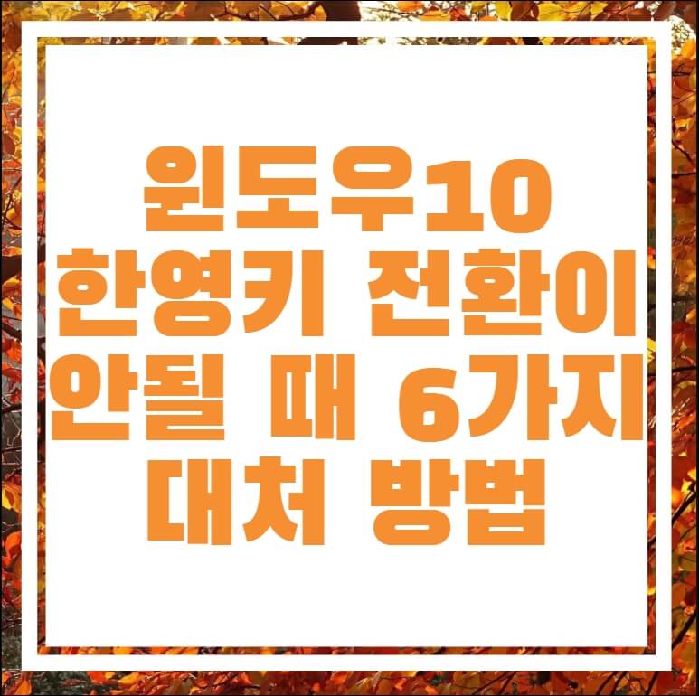 원인이 여러 가지가 있기 때문에 해결 방법 또한 여러 가지가 있습니다. 단순한 조치를 취해서 해결이 될 수도 있지만 때로는 레지스트리 편집 같은 어려운 일을 해야 할 때도 있죠. 레지스트리 편집 같은 경우 잘못하면 시스템 자체에 이상이 생길 수 있을 만큼 예민한 부분이기 때문에 컴퓨터 초보라면 그리 권장해 드리지는 않습니다만 그래도 이런저런 방법을 전부 조치했음에도 안될 때는 한 번씩 조작해보는 것도 필요합니다. 오늘은 한영키 전환이 안될 때 6가지 대처방법에 대해서 알아보도록 하겠습니다..