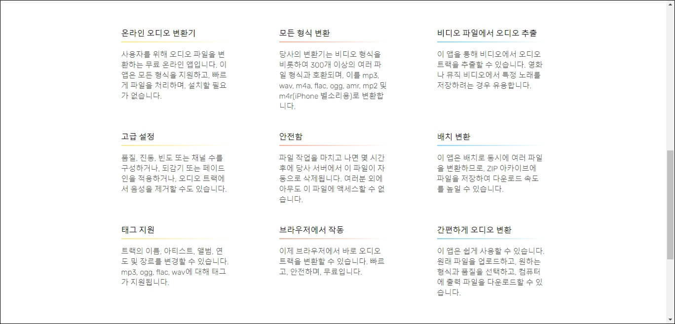 제가 온라인 오디오 변환기 사이트를 이용하는 이유는 여러 가지가 있는데요.. 이 사이트의 장점에 대해서 몇 가지 정리를 해보겠습니다.
