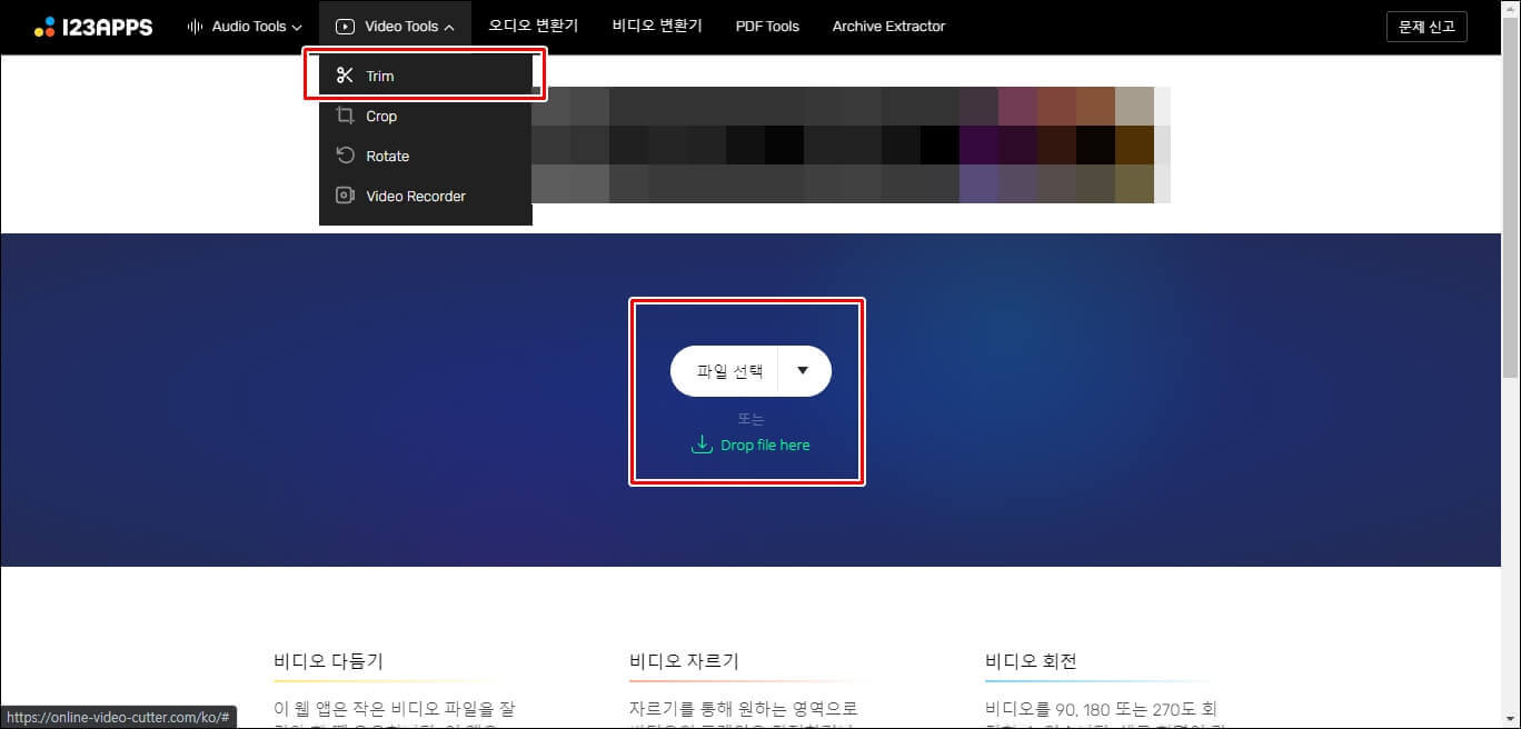 Video Tools에서 Trim을 선택해 보았습니다. 여기서 동영상 파일을 편집할 수 있습니다.