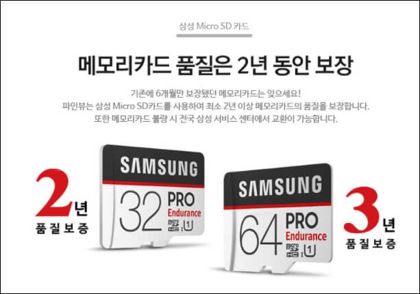 또한 스마트 타임랩스 기능을 통해 같은 용량으로 영상 손실 없이 2배 저장이 가능하며 자동으로 최적 화질을 찾아 튜닝하는 오토 나이트 비전 기술도 적용되어 있으며 삼성 마이크로 SD 카드를 채택하여 최소 2년 동안 메모리 카드 품질을 보장하고 있습니다.