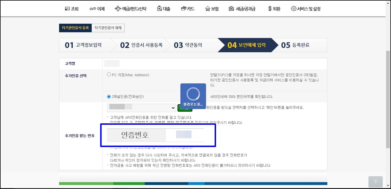 그러면 인증번호를 부여받게 되고 스마트폰에 전화가 걸려오는데요.. 스마트폰에서 인증번호를 입력하시면 됩니다.