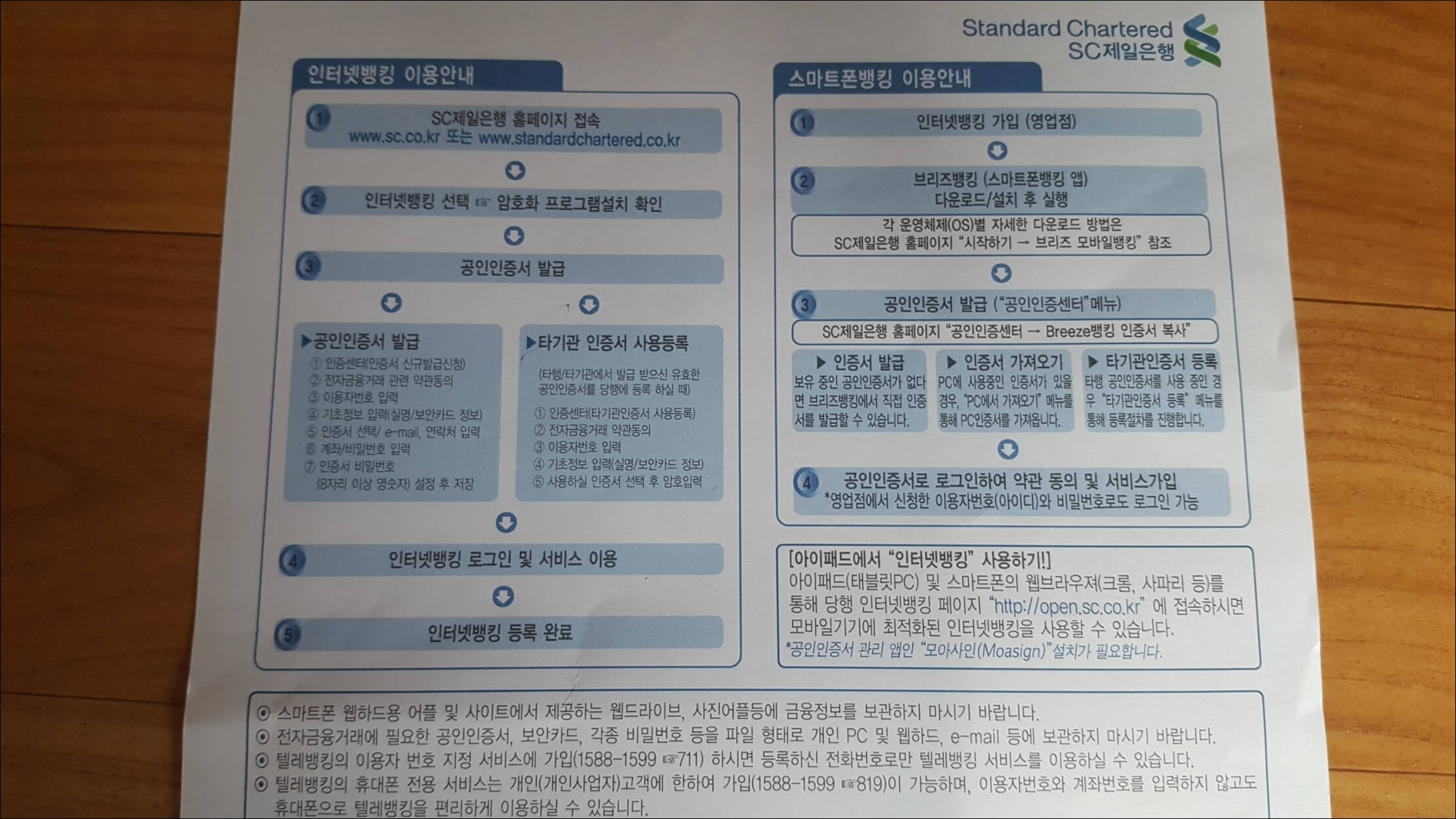 오늘은 이렇게 SC제일은행의 인터넷뱅킹 사용을 위한 공인인증서 등록 방법과 은행에서 직원이 알려준 몇 가지 정보 그리고 안내문의 내용을 함께 알아보았습니다. 관련 정보가 필요하신 분들께 좋은 정보가 됐으면 합니다. 감사합니다.