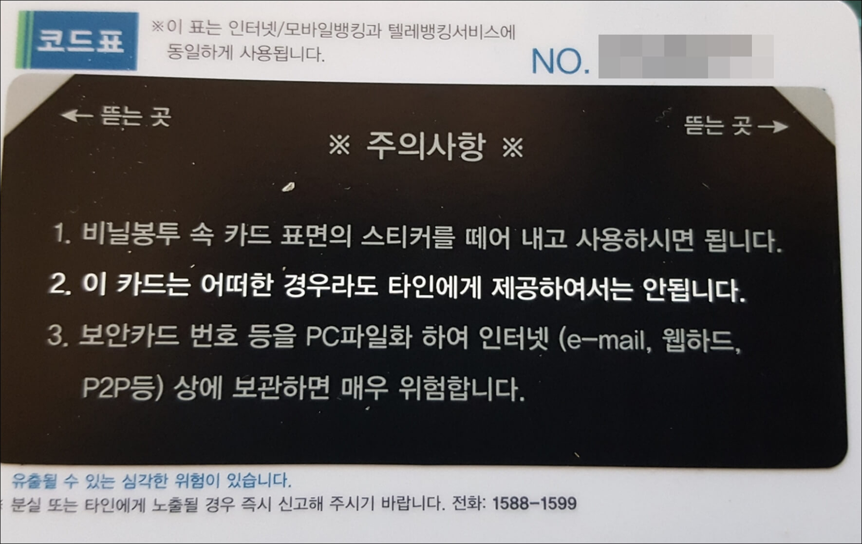 그러나 편리한 만큼 보안과 관련된 안전사고도 꽤 많이 일어나고 있습니다. 2000년도 초반에는 보안 사고가 너무나 많이 일어났었기 때문에 2003년도부터 금융감독원에서는 금융 관련 사고를 예방을 위해 보안카드시스템을 도입 함했었고 2008년도에는 법인을 사용하는 분들에게는 OTP가 의무화가 되었습니다.