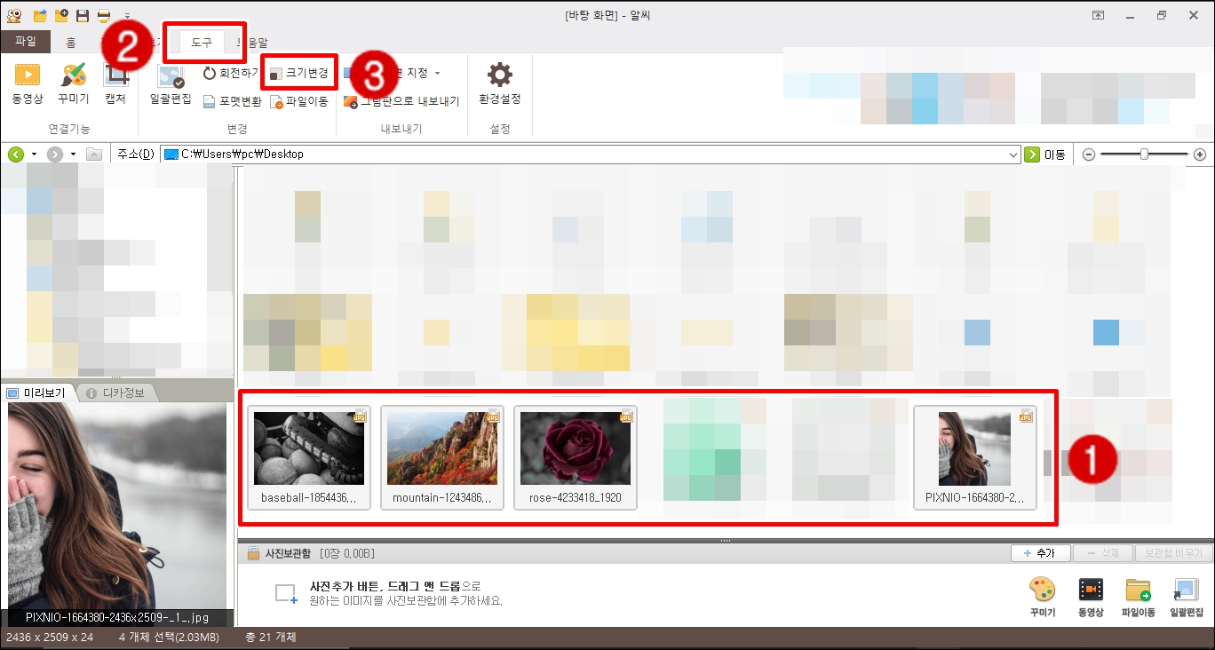 2. 알씨로 사진 용량 줄이는 방법