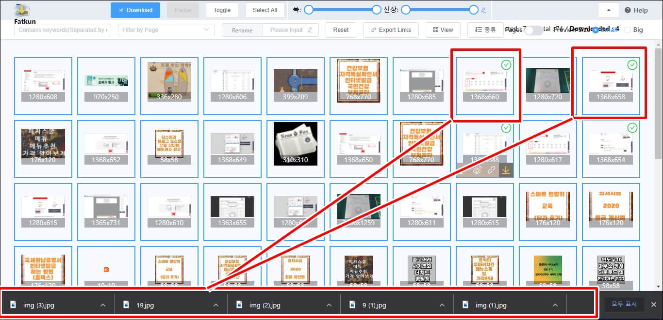 Download [All Tabs]는 현재 열려 있는 모든 창의 이미지를 다운로드할 수 있는 옵션